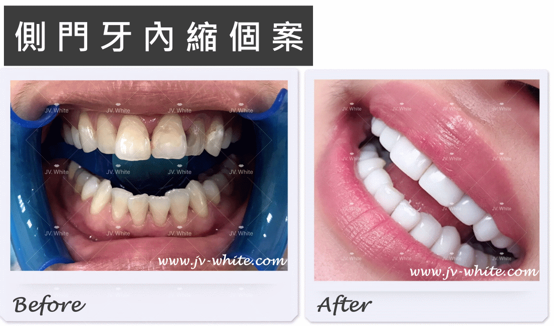 側門牙內縮,導致微笑時像缺了牙:(美牙完成後大笑也不怕了!